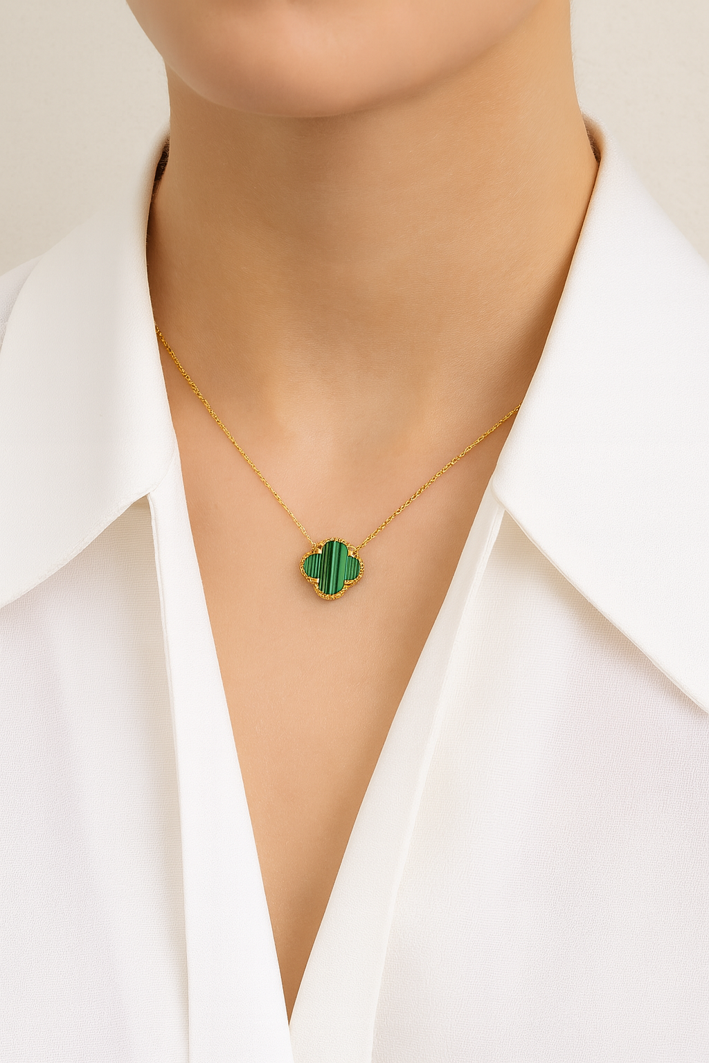 Lančić Luxe Clover Stripes - gold/green