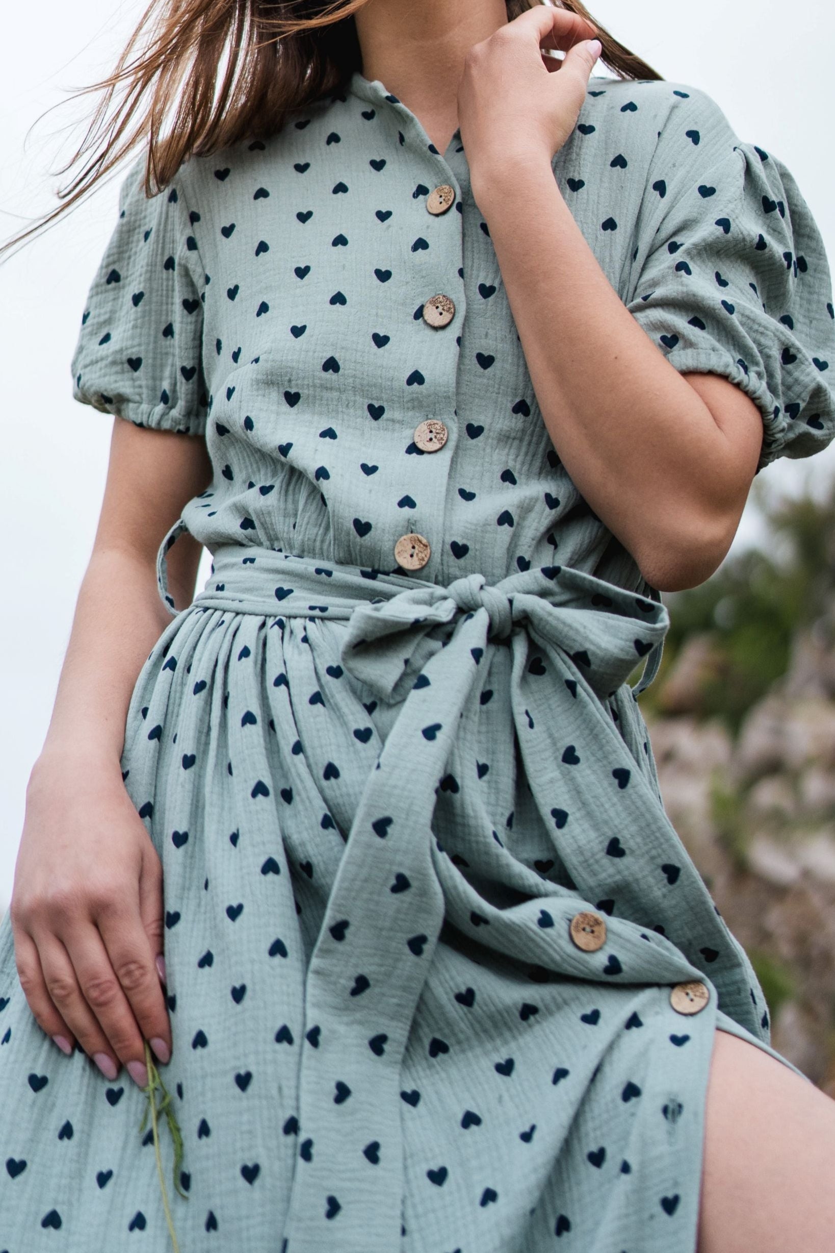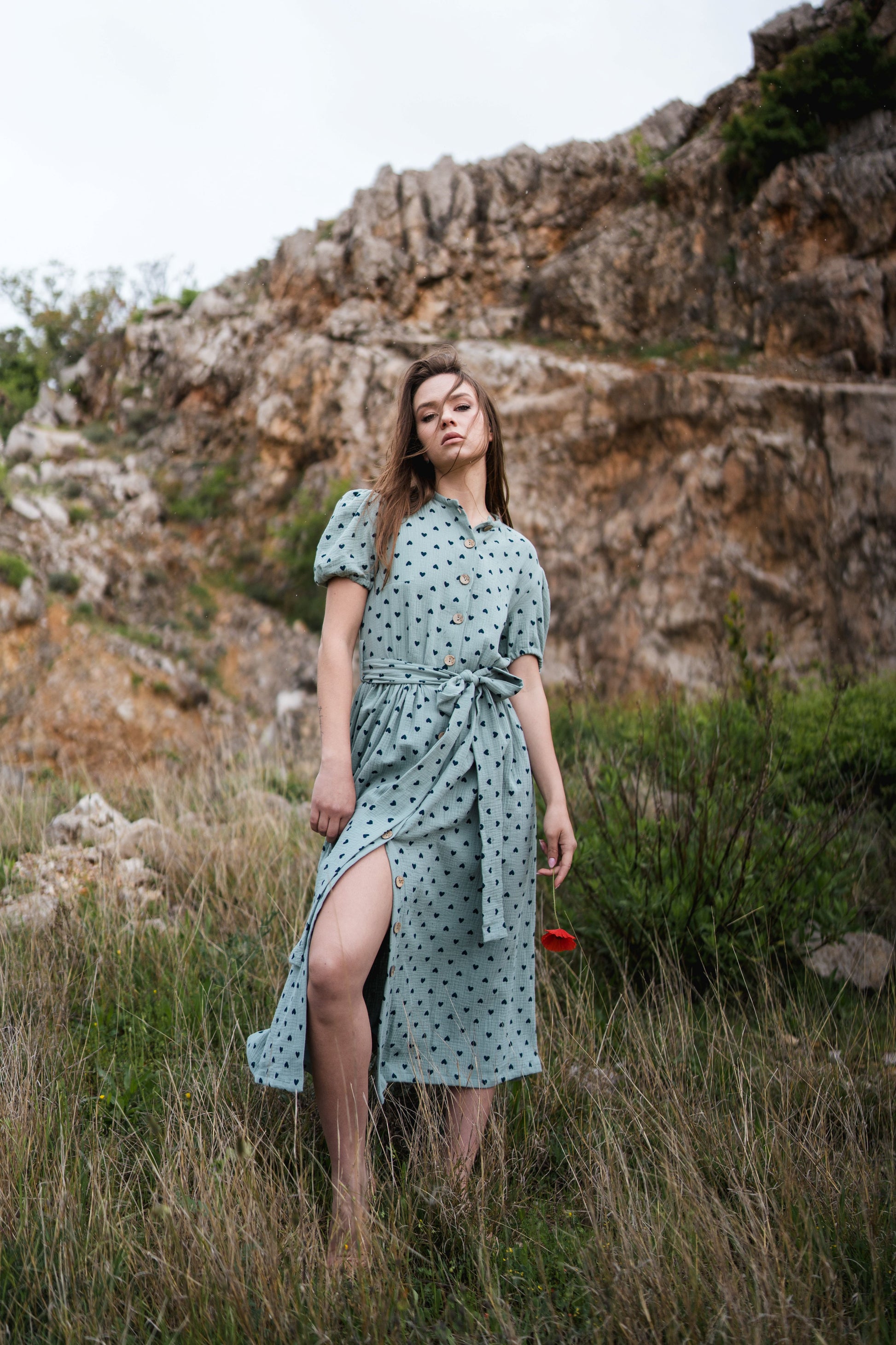 Questo abito in mussola leggero e arioso è la scelta perfetta per le giornate calde. Con maniche corte e taglio lungo, regala comfort ed eleganza in ogni movimento. Regolabile in vita per una vestibilità perfetta e per mettere in risalto la figura. È ideale per le passeggiate quotidiane, la spiaggia o gli incontri rilassati.