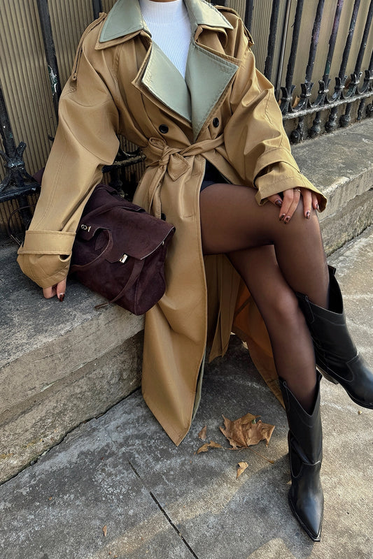 • Cappotto Maxi Trench con Colletto Bicolore - Marrone