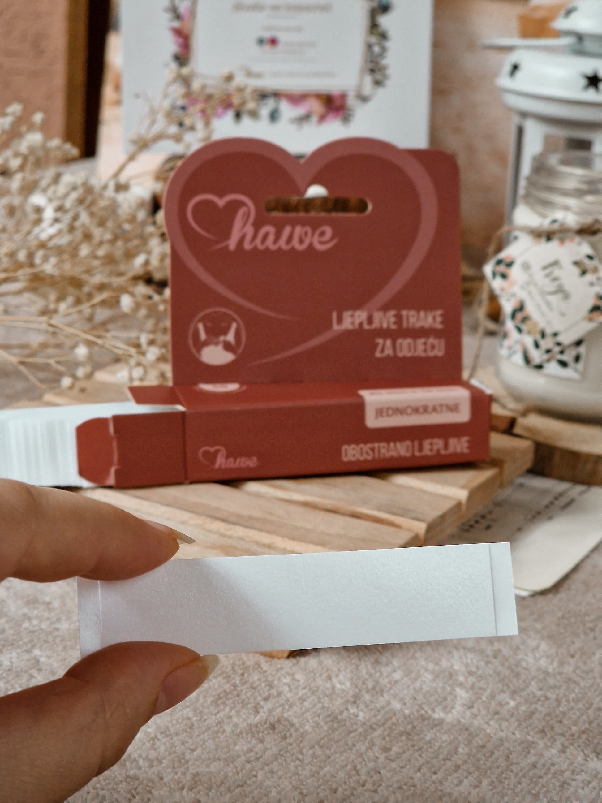 Pomoću ove sigurne i nevidljive dvostrane ljepljive trake vaša će odjeća ostati uredna i na mjestu. Idealna je za lepršave haljine, majice, košulje, ovratnike, sakoe, kravate, čarape, čizme i slično.