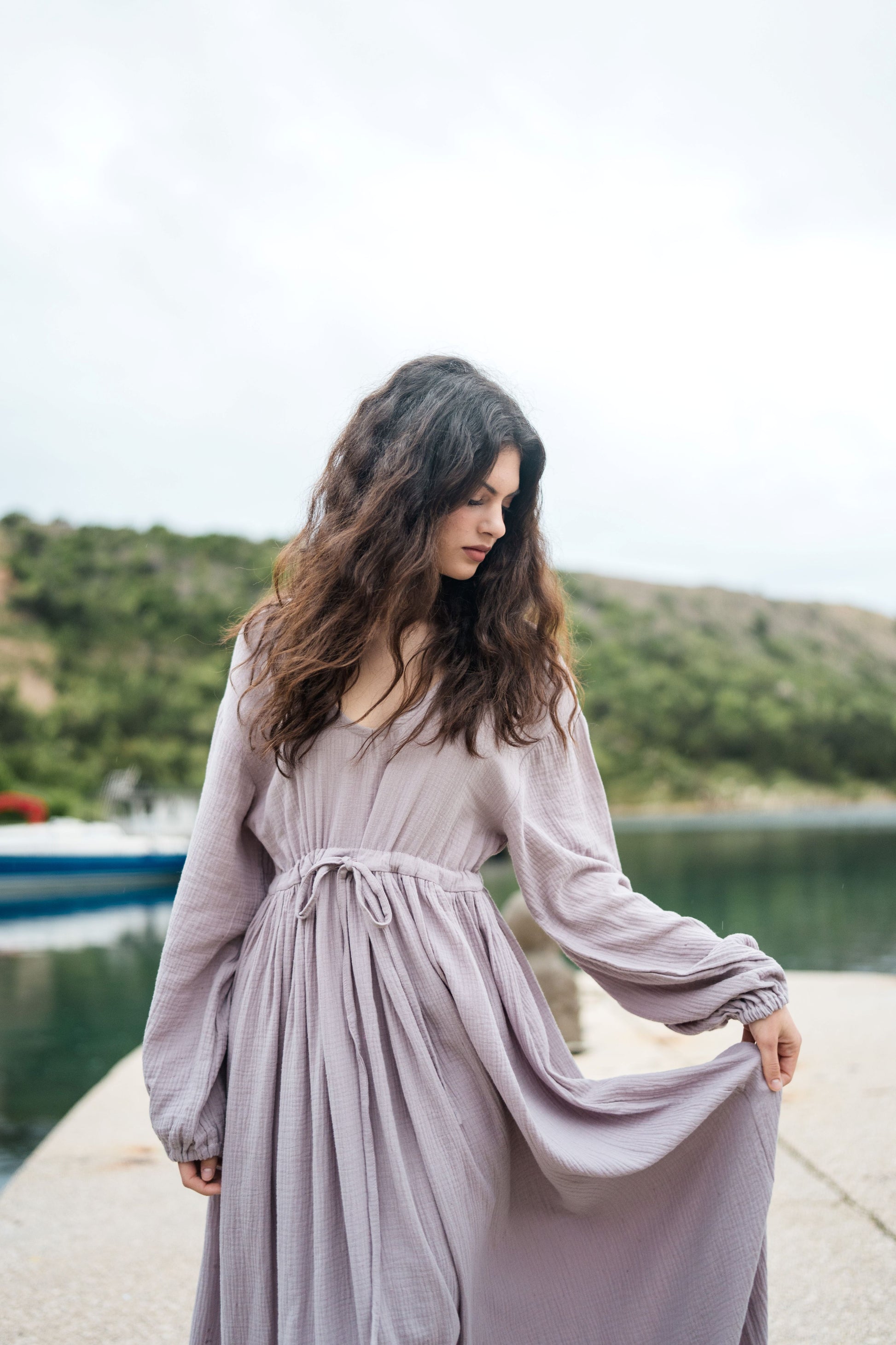 Long Muslin Dress - lavander