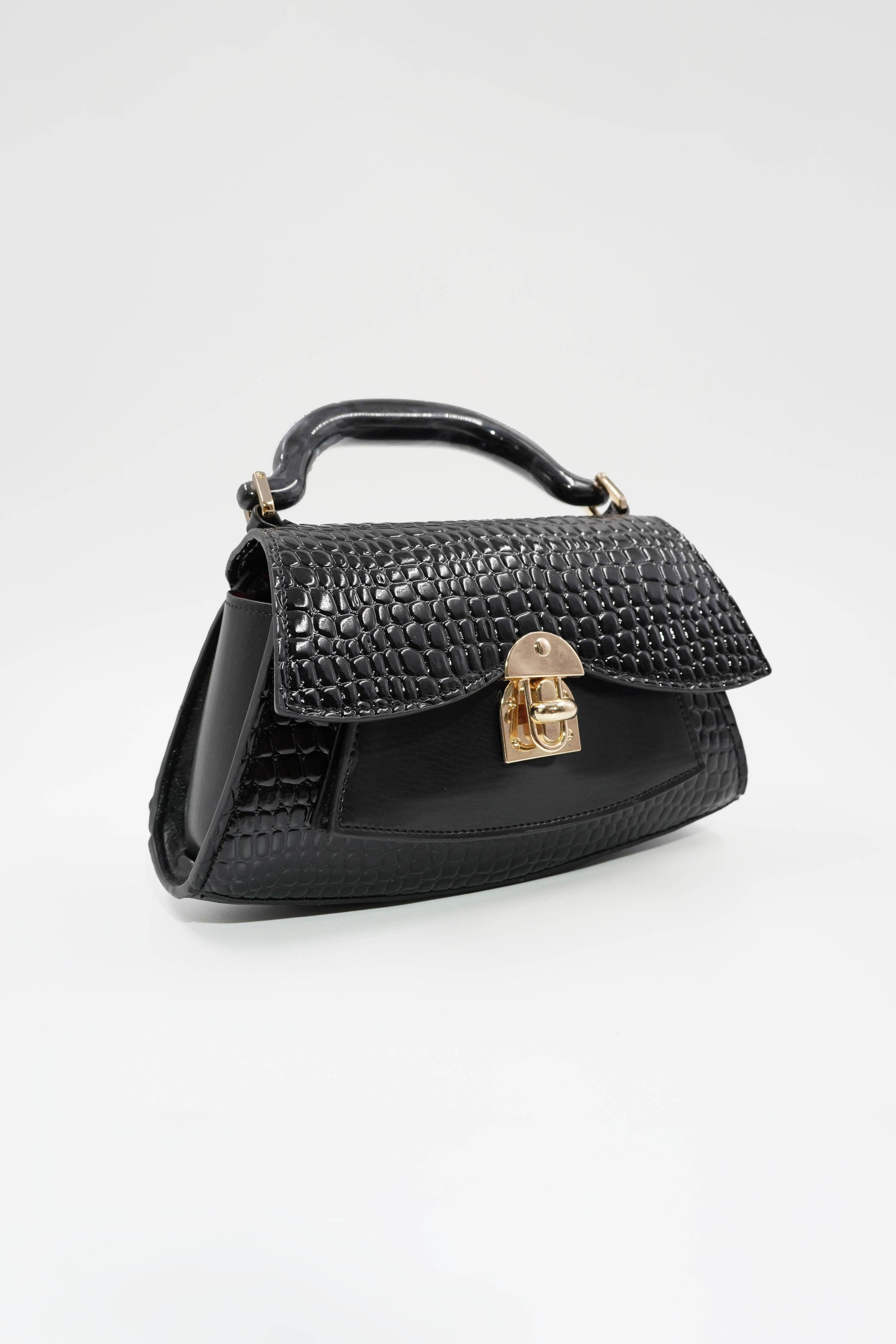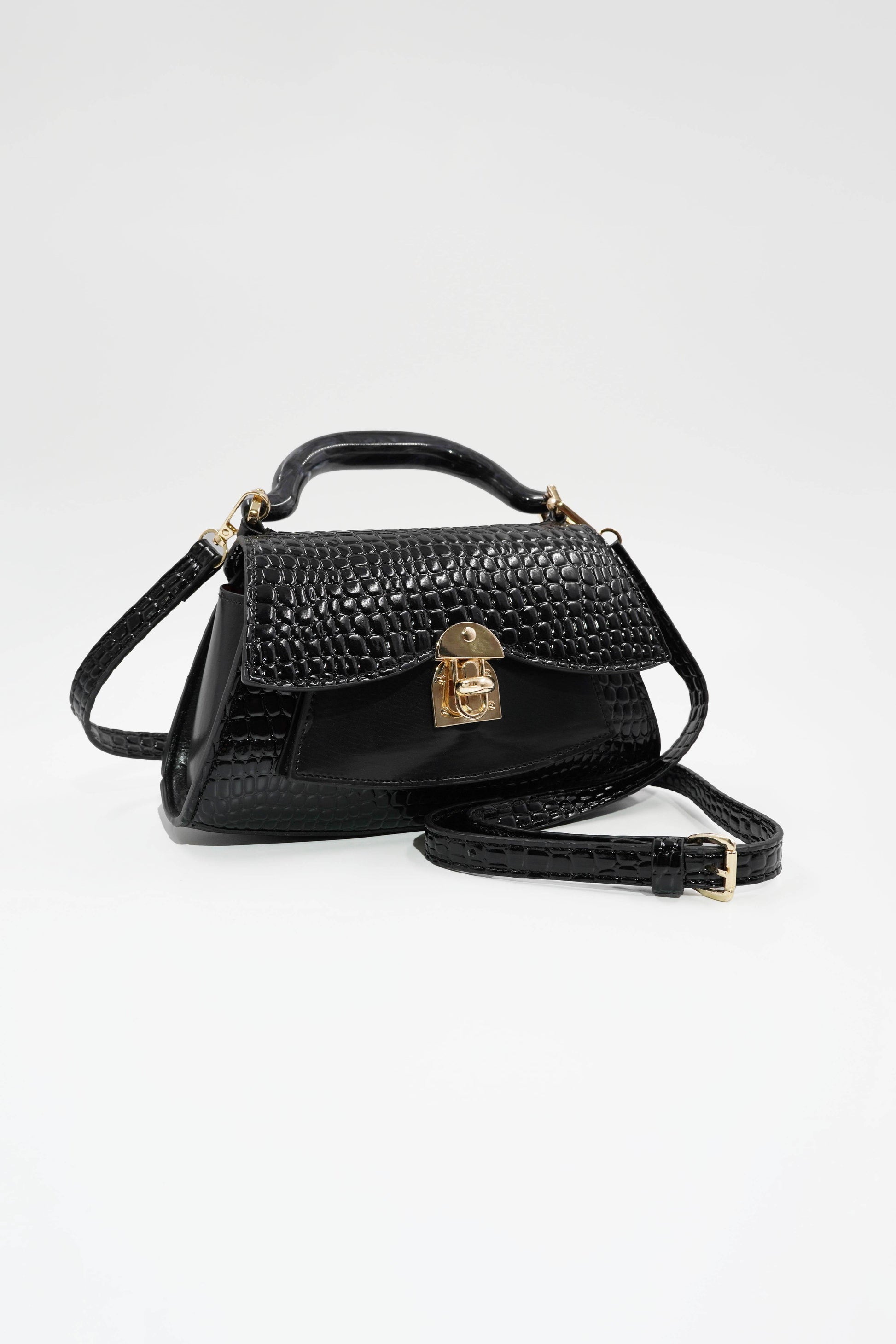 Ova sofisticirana torba savršen je spoj modernog dizajna i bezvremenske elegancije. Čvrsta ručka od poliranog materijala daje joj luksuzan izgled, dok zlatni detalji unose dozu glamura. Unutrašnjost je prostrana i praktična, s dodatnim pretincem za sitnice. Može se nositi u ruci ili preko ramena zahvaljujući podesivom remenu. Tvoj savršen saveznik – od jutarnje kave do večernjeg izlaska.